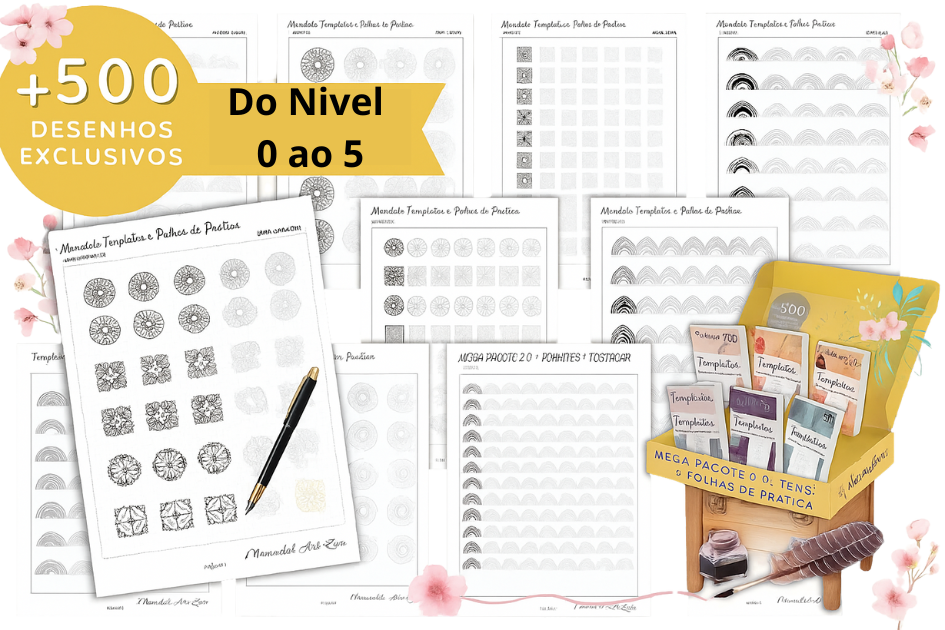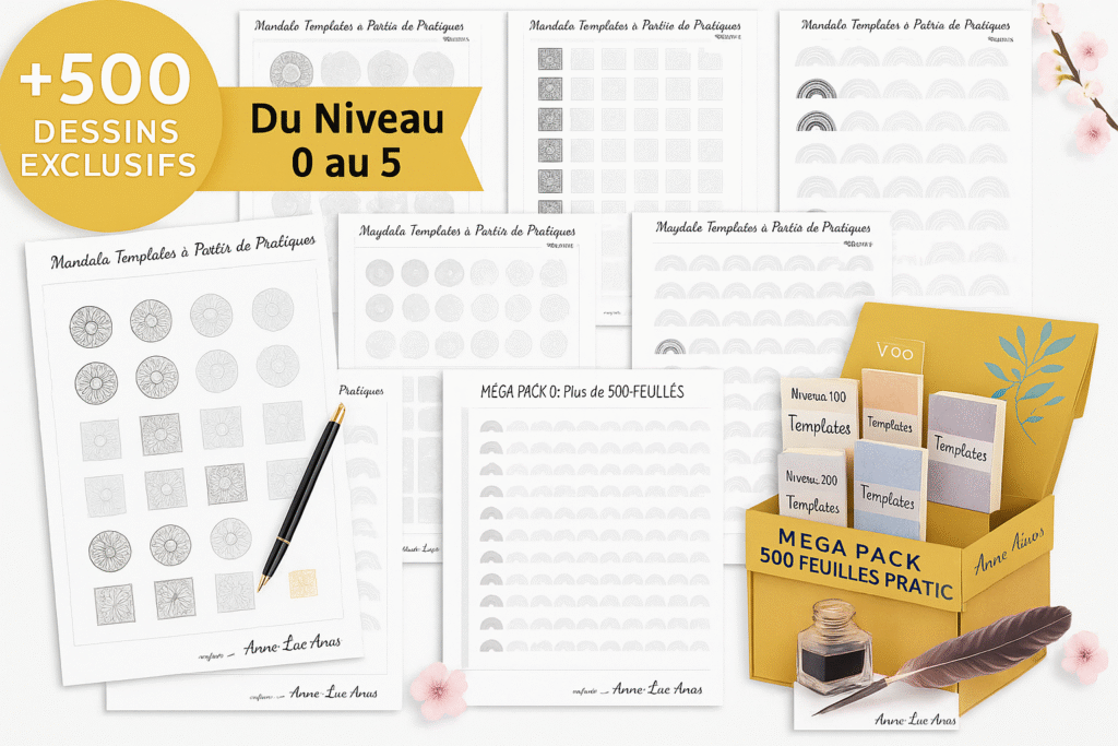 C’est ainsi qu’est né le Kit Mandalas Art Zen — un ensemble de modèles exclusifs à imprimer, tracer et se détendre, créé avec beaucoup d’attention pour celles qui recherchent plus de légèreté, de focus et de bien-être.